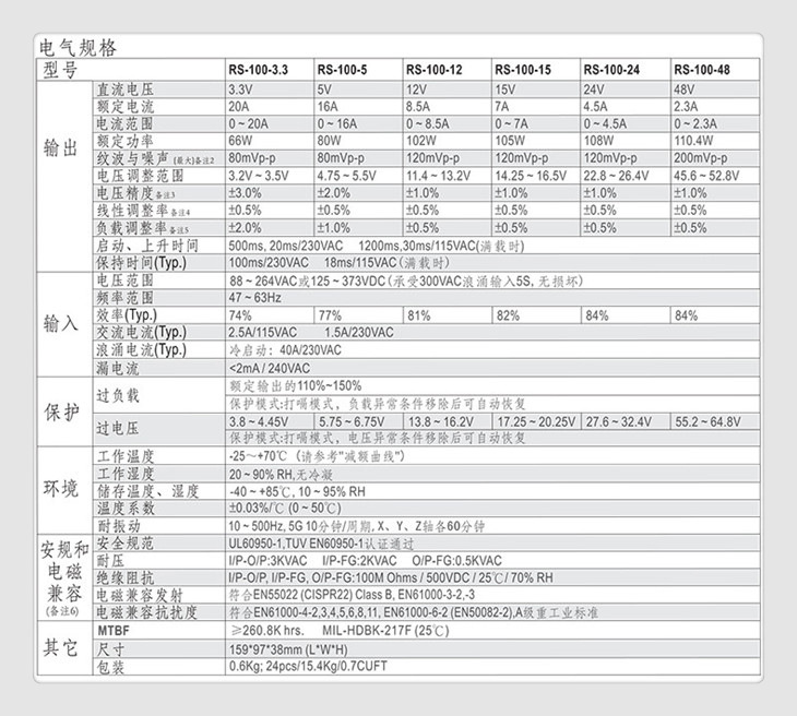 输入电压范围 88~264VAC/120~370VDC(承受5秒钟300VAC高压输入不损坏)