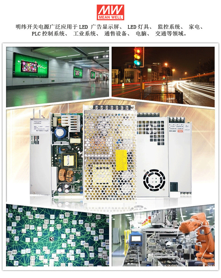 高可靠开关电源机型, 可承受5G震动与70°C高工作环温,全机使用105°C高寿命电解电容,可承受300VAC突波输入达5秒,适合使用于较严苛的工作环境