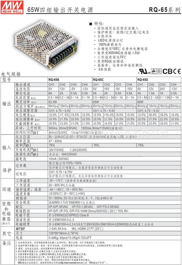 电磁兼容标准 发射:EN55022(CISPR22) class B 谐波:EN61000-3-2,-3