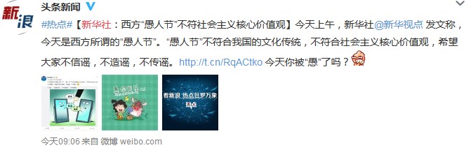 开个玩笑别当真,只因今天是"愚人节"!然而,在这"欢乐多多"的日子里,新华社官博也来掺一脚表明西方"愚人节"不符合社会主义核心价值观,遭到众多网友吐槽。