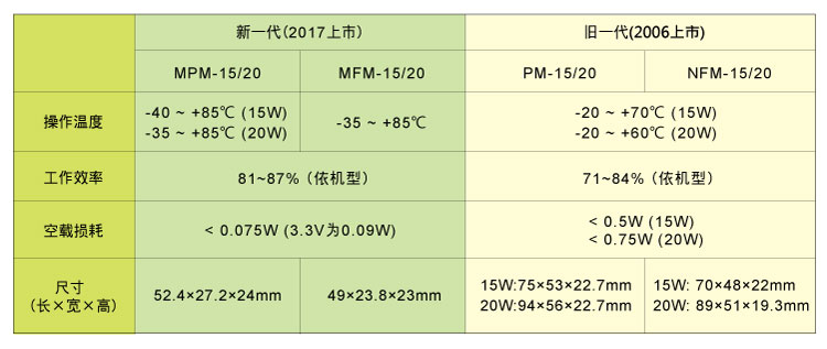 MPM/MFM系列与前一代主要规格差异请参考下表: