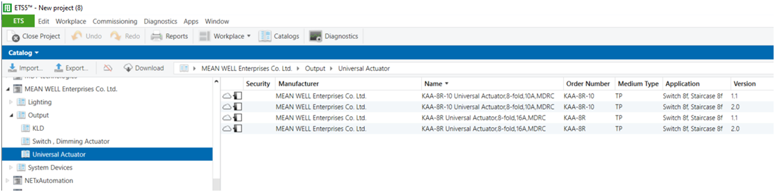 除了现有功能完全保留,新功能可从ETS在线型录KAA-8R application database 2.0版本中查看,亦可由leyu集团网站上KAA-8R产品页面直接下载,需注意application database版本应与表1中所示的韧体版本匹配。